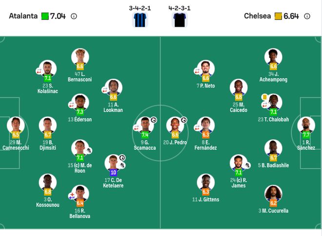 亚特兰大首发:29-卡尔内塞基、3-奥迪隆、23-科拉希纳茨(72’69-阿哈诺尔)、19-吉姆西蒂、47-贝尔纳斯科尼、17-德凯特拉雷、13-埃德松-席尔瓦(87’6-尤纳斯-穆萨)、16-贝拉诺瓦(17’77-扎帕科斯塔)、15-德容恩、11-卢克曼(87’8-帕萨利奇)、9-斯卡马卡(72’90-尼古拉-克尔斯托维奇)。
